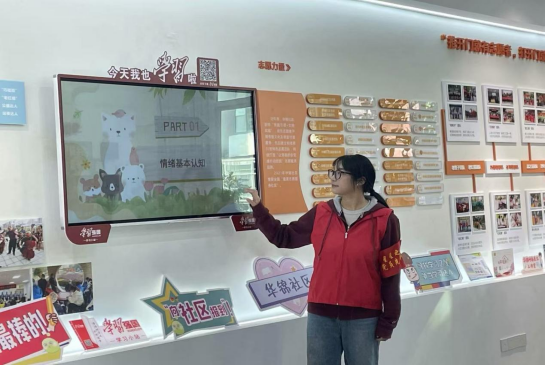 在识别情绪的趣味互动环节中,张慧童巧妙引导孩子们分辨各类情绪的独特之处。她帮助孩子们细致辨别相似情绪间的微妙差别,比如困惑与迷茫、惊喜与狂喜的不同感受。她还耐心带领孩子们体验深呼吸、冥想等放松技巧,孩子们闭上眼睛,跟随志愿者轻柔的引导声,缓缓地吸气、呼气,在轻柔的音乐中,他们逐渐放松身心,专注于自己的呼吸,体验到了内心的平静与宁静。