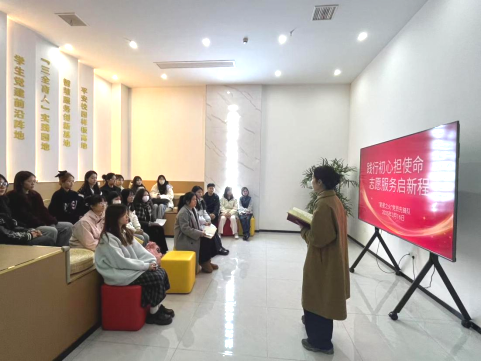 指导老师陈惠紫向党员同志从三个维度提出工作要求:一要立足“服务群众”根本点,策划解决师生实际需求的服务项目;二要把握“贴近实际”着力点,结合学科优势创新服务形式;三要突出“展现担当”关键点,将服务实践作为淬炼党性的生动课堂。希望同学们在志愿服务中擦亮党员身份,让党徽在服务一线闪耀光芒。