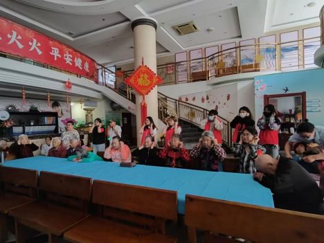 志愿者们身着统一志愿马甲,携带精心准备的手工工具和自编自演的文艺节目,于活动开始前半小时抵达养老院,简短的欢迎仪式后,志愿者迅速投入到各项服务活动中。