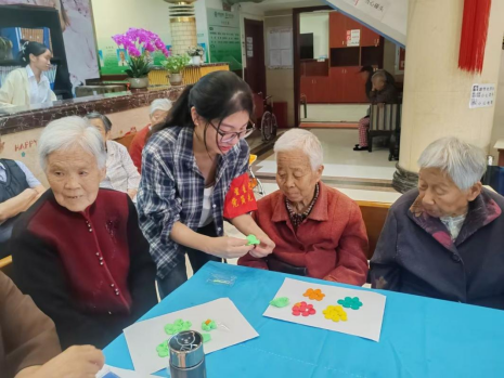 随后,志愿者与老人们一起参与了趣味游戏和手工制作活动,共同制作了简单而富有创意的黏土手工艺品。同时志愿者们为老人们表演了丰富多彩的文艺节目,包括经典歌曲串烧、红歌联唱和舞蹈等,赢得了老人们的阵阵掌声。活动现场洋溢着欢声笑语,温馨的氛围感染着在场的每一个人。