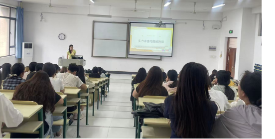 活动中,李林薇结合英语专业学生考研需求,从四个关键部分展开深度交流。在“实力评估与院校选择” 环节,她通过介绍自己的经验,指导同学们如何根据自身学习情况和未来规划,科学合理地选择目标院校;针对 “学硕与专硕的选择”,她详细对比两者在培养目标、学习费用、就业方向等方面的差异,帮助同学们做出合适的选择。