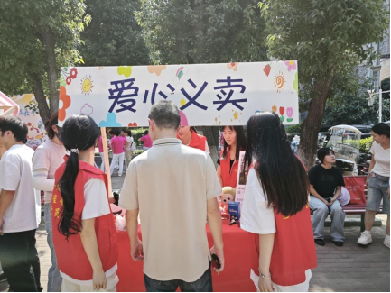 活动当日,华锦社区内人头攒动,热闹非凡。“星星之火” 党员先锋队队员们穿梭其中,热情洋溢地向过往居民详细介绍义卖物品,还主动为社区老人提供细致入微的帮助。面对不熟悉电子支付的老人,志愿者们手把手教学,耐心讲解每一个操作步骤。在志愿者的悉心指导下,老人们顺利完成捐款,脸上洋溢着温暖的笑容。