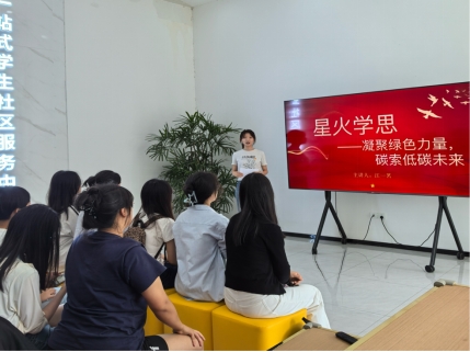 6月11日,在“星星之火”党员先锋队组织了一场以绿色环保主题宣讲活动。学生党员江一茗作为主讲人,以“凝聚绿色力量,碳索低碳未来”为题,带领学员们共同学习了绿色发展的四大核心理念,增进对习近平生态文明思想的理解。
