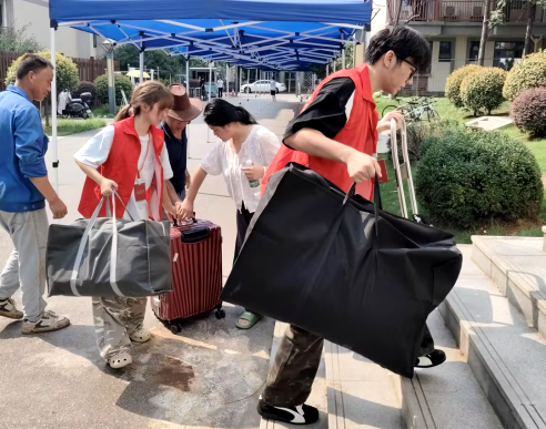 在整个搬迁过程中,志愿者与后勤人员紧密协作,保障行李装卸高效进行;在宿舍区内,他们不辞辛苦,协助同学将行李准确送达对应房间,始终以热情和耐心回应各类咨询,用实际行动践行“奉献、友爱、互助、进步”的志愿精神,成为搬迁工作中一道亮丽的风景线。