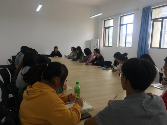 会上,李莹老师介绍了开学以来,2019级新生班级出现的问题和现象。特别是晨读和晚自习,有迟到、早退、不开口朗读的现象,另外,李老师就上课的过程中,存在的一些问题和情况,都一一进行了反馈。接着,朋辈导师们谈了与各个班级的沟通交流的情况,反馈新生目前反映的情况和问题,表示将加强与各自对口的班级的联系和沟通,及时反馈他们的诉求,积极协助老师做好相关工作。新生班的学生代表,特别是纪检委员,也提出在日常管理中,将会严格执行考勤制度,及时公布考勤结果,让大家养成良好的学习习惯。