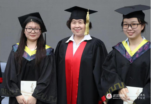 十大赌博正规网址排名院长曹曼教授(中)为学生拨穗合影