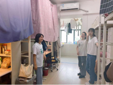 6月10日,辅导员李莹老师来到2019级本科学生宿舍,首先依据宿舍卫生安全考核标准,仔细查看宿舍的地面、书桌、床铺等重点区域,提醒学生注意用电安全、注意开窗通风,确保做到检查全覆盖、无死角。走访宿舍时,李莹老师还与同学们亲切交流了最近一段时间的学习生活情况,对同学们积极昂扬的精神面貌和勤奋认真的学习态度表示肯定,鼓励各位同学不断进取,在学业上取得新的进步。不少同学也畅所欲言,纷纷就生活、学习中的一些感想与老师进行交流,笑语欢声,暖意融融。