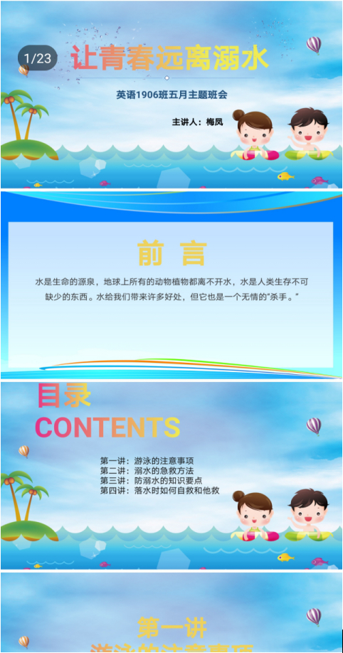 随着新冠病毒疫情的逐渐好转,大部分消费门店和娱乐设施也随之解封,特别是炎暑将至,不少学生都喜欢到泳池或者水边玩耍,所以防溺水教育刻不容缓。5月13日,十大赌博正规网址排名英语1906围绕“让青春远离溺水”主题开展班会活动。