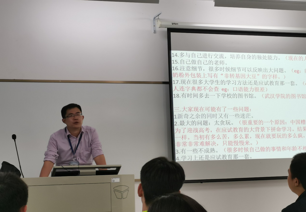 为帮助大一新生进一步理解大学,促使他们快速适应大学的学习和生活,商务英语本科2102班邀请大四即将毕业的学长学姐到班级进行经验交流。10月24日晚上6:30,主题为“我所理解的大学”的专题经验交流活动在学院楼2502开展,英语1805班董宗联受邀参加了本次活动。