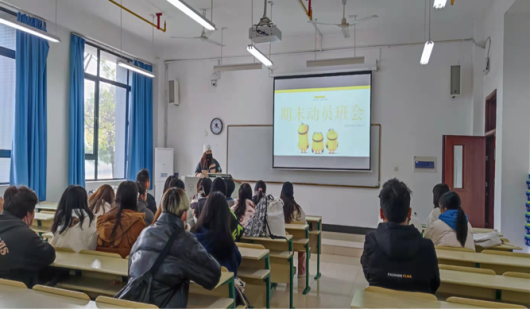 在大一上学期期末考试来临之际,为营造良好的班级学习氛围、增强班集体的凝聚力,在辅导员鲁玉婷老师和班主任罗峰老师的共同策划和指导下,英语2104班于12月13日上午10:20在中3102教室召开了期末动员班会,班长黄昱嘉主持了本次班会。