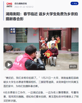 李建国团队的志愿服务活动受到乡民们的称赞,得到央视新闻、衡阳日报、三湘都市报、红网时刻等多家媒体的关注与报道。李建国说:“让他们的幸福留影,作为一名拍摄者,我们也是幸福的。”像李建国这样的大学生志愿者们是在用青春力量彰显志愿精神。寒假的返乡志愿服务之旅让李建国同学的青春发光发热,温暖他人,彰显精神。