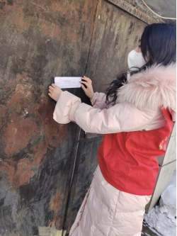 “候鸟归巢援抗疫”志愿服务共有13人通过核酸检测、业务培训后组成了莲江口镇“归巢候鸟”返乡大学生志愿服务队,徐兴宇同学担任了志愿服务队的队长一职,组织志愿服务活动,登记志愿者们的信息和签到情况、发放志愿者服装、制作防疫宣传视频、带领志愿者们下乡入户,通知莲江口镇居民进行全民核酸检测、排查外来返乡人员,并登记因身体原因需要上门核酸检测的居民,带着胶水对不在家的居民大门上粘贴全民核酸通知单,做到不漏一户,在零下二十多度的室外,胶水涂在通知单上没一会儿就失去了黏性,手指也冻僵了,没有那么灵活,尽管天气寒冷,但这丝毫不能阻挡她的工作热情,一次粘不牢就粘两次,两次粘不牢就粘三次,直到确保通知单不会掉下来。在汇总所有信息后,她与镇里的工作人员进行了细致的对接和反馈。