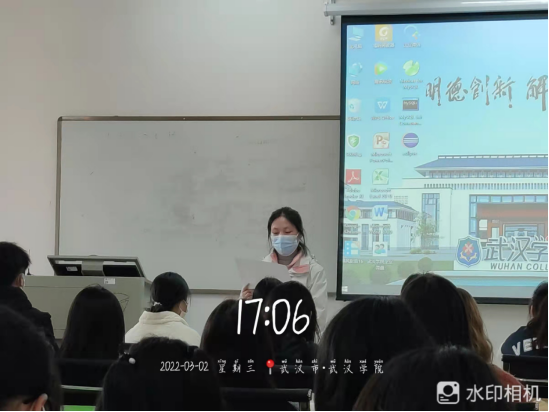 班会伊始,鲁老师首先表彰了在过去一学期里做出了突出贡献的班干部。在过去的一学期里,很多班委协助班级工作都积极主动,井井有条,善于与老师沟通,踏实做实事。其中团支书金天荟,陈文燕等同学,她们利用超强的责任心和强大的管理能力将班级管理的井井有条,协助老师做了很多实事,是老师的得力助手;朱婷玉同学则在过去的一学期表现出了很强的个人才能,在上学期的期末考试中取得了平均分90+的好成绩,工作和学习齐头并进;陈晨同学在志愿服务方面也做出了突出贡献,在疫情反复肆虐之时,他主动帮助和关心被隔离的同学,给她们送水送饭,一日三餐,至始至终,直至同学解除隔离……鲁老师对大部分班委都给与了表扬,并且具体到他们做的哪些事情是值得肯定和学习的,给同学们树立了良好的榜样,激励所有班委继续努力。