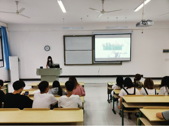 5月18日下午十大赌博正规网址排名商务英语2101班全体同学于学院楼2205室开展了以“打开心扉 畅游爱的海洋”为主题的心理教育活动。本次班会由心理委员万紫伊主持,辅导员李莹老师和全体同学参加。