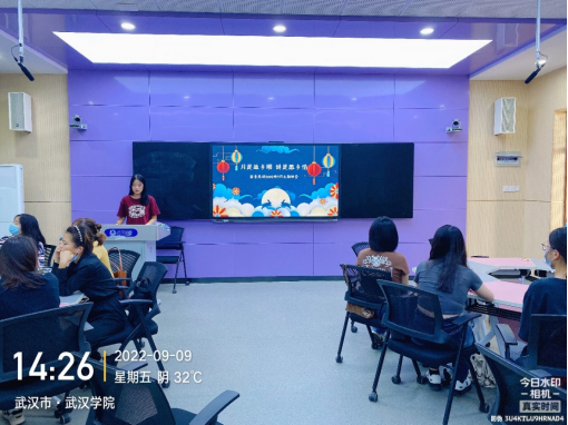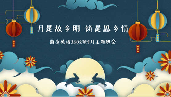为庆祝中秋佳节的到来,丰富同学们在校生活,商务英语2002班于2022年9月9日下午14点20分在学2302教室召开“月是故乡明,饼是思乡情”中秋主题班会活动。