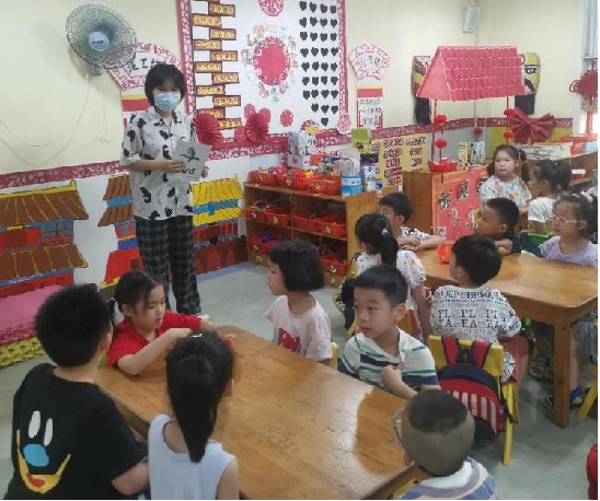 7月8日,天气酷热,志愿服务者们早早来到幼儿园。一入园,看着一张张挂满了笑容的脸庞,汗流浃背的志愿者们顾不上擦去汗珠,便微笑着和小朋友们打起招呼。