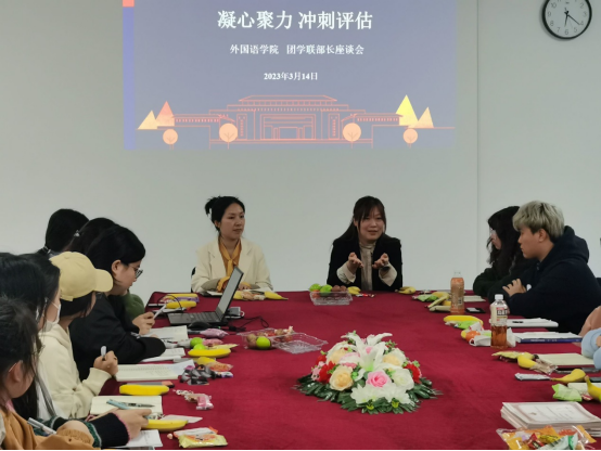 会议伊始,曹辉书记肯定了团学联成员一直以来的工作态度,强调了团学联各部门在为评估工作冲刺期间的积极带头作用,对部长们提出了三点要求:以身作则、管理好各自部门、带动身边的每一位同学。她希望干部们在评估冲刺期间做好自己,带动他人,共同创造良好的学习氛围,以最佳的状态迎接最重要的“贵客”。