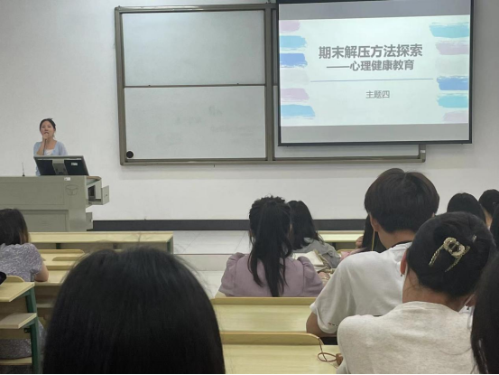 最后,鲁老师以提问的形式与同学们互动。她问同学们临近期末有没有什么很紧张或者很焦虑。同学们频频点头,展现出了自己的愁容。鲁老师为同学们分享了应对焦虑的三个步骤——连接身体、形成意向、说出焦虑,同时分享了通过身体表达情绪的方法,包括心理剧、舞动治疗、瑜伽、跑步等,这些方式都可以通过身体的动作恰如其分地将焦虑情绪释放出来。