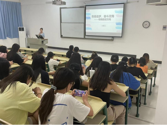 随后,在六月主题团日教育中,鲁老师用“青春”和“奋斗”两个关键词来阐释“青春追梦,奋斗无悔——明确前进方向”的内涵。青春不仅是一段年华,更是一种精神状态。不懈奋斗,是青春的主题词。“志不求易者成,事不避难者进”,鲁老师和同学们分享了优秀的学长学姐们的学习历程以及学习经验,希望同学们可以在青春这张纸上,手持“奋斗”之笔,留下浓墨重彩的一笔。不论是选择考研考公也好,就业出国也罢,希望同学们以梦为马,不负韶华。