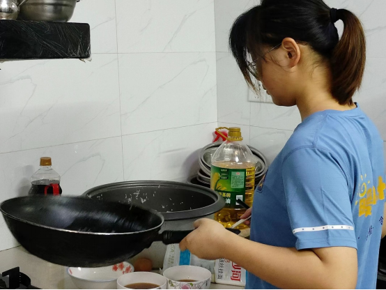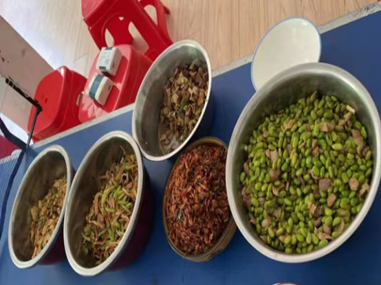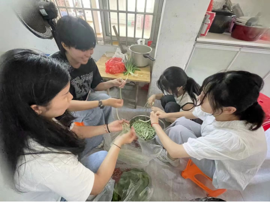 除了关心孩子们的学习和生活,志愿服务队成员还帮助阿姨做饭,为一同在儿童服务中心的进行支教服务的成员们提供丰富的营养餐。在阿姨的精心烹饪下成员们品尝着美味佳肴,这顿营养餐不仅填饱了他们的肚子,更让他们感受到亲情和温暖。