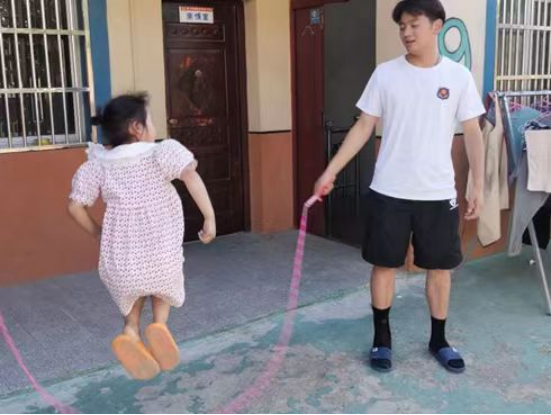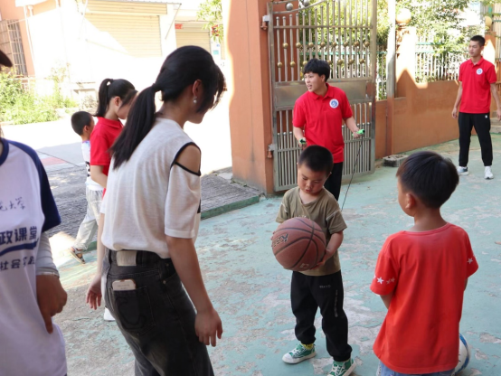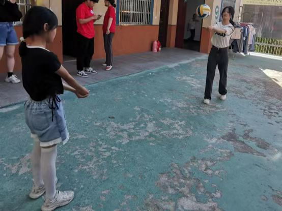 学习了食品安全知识之后,志愿服务队成员带领留守儿童们参与丰富多彩的体育活动,旨在促进他们的身体健康和团队合作精神。志愿服务队成员精心设计了一系列的运动项目,包括打排球、打篮球和学习花样跳绳。这些体育活动不仅让团队成员与孩子们建立了深厚的情感联系,同时也丰富了留守儿童们的课余生活,培养了他们的团队合作意识和竞争意识。