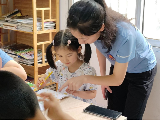 在7月6日,一大早,“予爱童行”志愿服务队的成员们早早地做好准备,开始带领孩子们进行一天的学习与探索。志愿者们辅导孩子们学习,耐心地解答问题,帮助他们掌握知识。此举不仅帮助孩子们巩固学业,还助长了他们对知识的渴望。