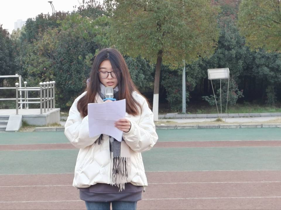 随后,优秀学生代表王壹涵发言。她说,宪法是每个中国人应该内化于心、外化于行的根本法则,我们身上承载着祖国的希望,肩负着振兴中华民族的崇高使命。作为新时代大学生,我们应当在宪法的指引下去寻找幸福的方向,在持续奋斗中前行,捍卫宪法的尊严,坚定信仰的决心。