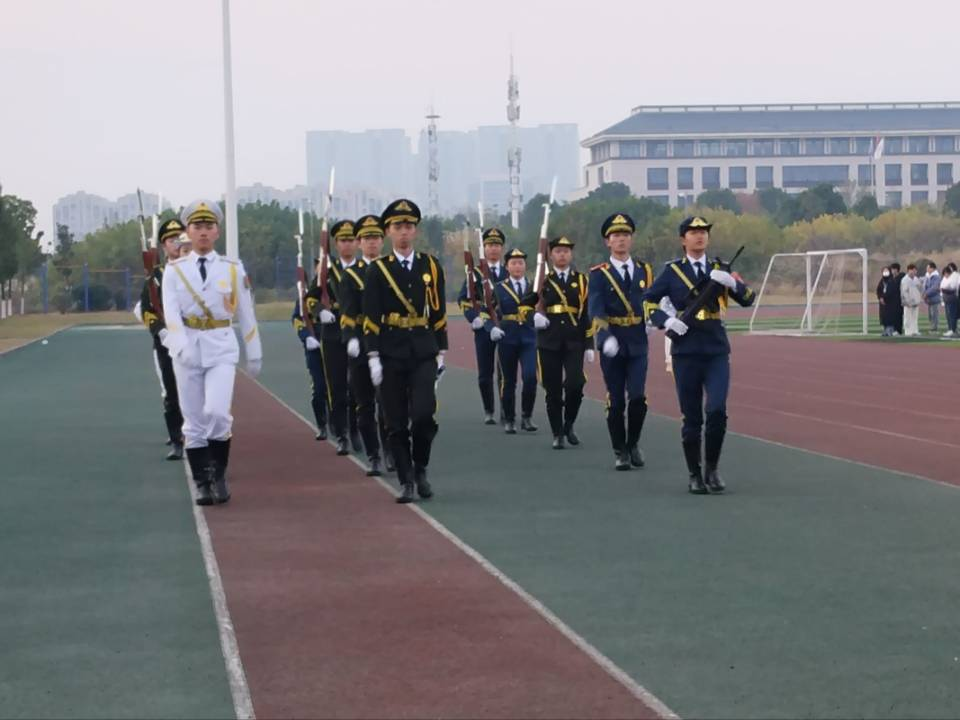 朝阳初升,升旗仪式准时开始。国旗护卫队队员迈着铿锵有力的步伐向升旗台走来,全体师生行注目礼,伴随着雄壮的国歌声,五星红旗缓缓升至旗杆最高点。