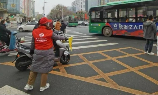 1月8日下午,社区新时代文明实践站为志愿者们开展文明交通从我做起"志愿服务宣教活动。活动中,张雨乐和其他志愿者们身穿红马甲对乱闯红灯、逆向行驶、随意掉头等不文明行为进行劝阻,教育引导市民遵守交通法规,文明行路、文明行车。张雨乐通过举指引牌,保证行人、车辆安全过马路,为广大市民营造一个平安的出行环境。她还通过发放一盔一带宣传单,给居民宣传正确佩戴头盔和安全带的重要性。在此期间,长治还迎来了一场大暴雪。由于积雪厚重和路面湿滑,使交通陷入了一个巨大的问题,于是张雨乐和其他志愿者加入了铲雪队伍。经过两天的时间,终于在大家的努力下,使交通恢复了原来的模样。通过这次文明交通执勤体验,张雨乐深深感受到了交警同志工作的辛苦,她以实际行动传递“文明交通,从我做起"的正能量,为文明城市创建贡献自己的一份力量。