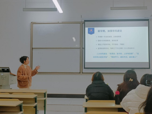 主题班会主要从安全教育、校园生活健康教育、心理健康教育、学业教育、新学期的重点工作等方面展开。辅导员通过主题班会形式开展安全教育,有效防范宗教渗透、网络和电信诈骗以及意外伤害等事件的发生;引导学生高度重视宿舍文明,打造积极的宿舍文化,营造文明、卫生、和谐的宿舍环境;加强学生良好生活习惯养成教育,引导学生早睡早起,走下网络,走出寝室,走向操场,加强体育锻炼,提升身体素质;及时掌握学生心理动态,帮助消除学生开学心理压力和思想顾虑;对上学期的期末成绩进行分析,引导学生找准新学期努力的方向……帮助学生们调整生活作息,适应校园生活,并明确新学期的学习规划。