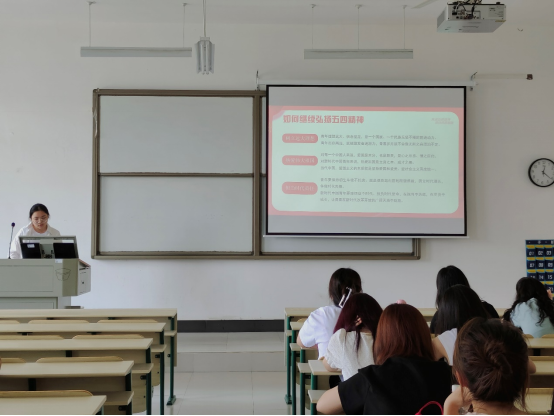 刘凯丽首先带领同学们回顾“五四运动”的发生经过及历史背景,这是中国新民主主义革命的开端,运动孕育的爱国、进步、民主、科学的五四精神,成为中国青年在党的领导下为中华民族伟大复兴而不懈奋斗的宝贵精神财富。1939年,在纪念“五四运动”20周年的时候,陕甘宁边区西北青年救国联合会决定5月4日为中国青年节(又称“五四青年节”),并在1949年中华人民共和国国务院正式宣布5月4日为中国青年节。