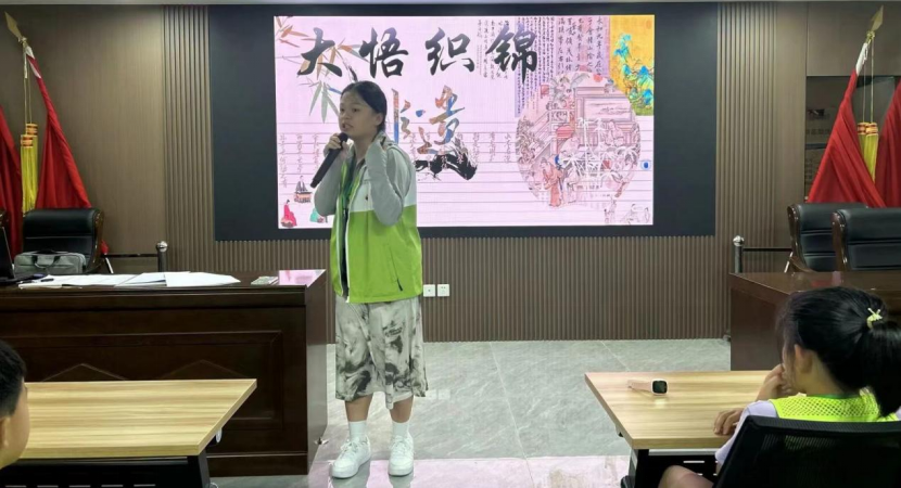 与此同时,非遗大悟织锦的瑰丽与精湛也被巧妙地带入课堂。队员许闰平不仅向孩子们娓娓道来织锦的历史渊源与文化内涵,更是亲自操刀,示范织锦的细腻技艺。孩子们在亲自动手的实践中,不仅触摸到了传统手工艺的温度,更是在指尖的舞动中领略到了非遗艺术的非凡魅力。这种将传统文化与现代教育相融合的教学方式,不仅让孩子们对非遗文化有了更为深刻地理解和认识,更重要的是,它激发了孩子们对传统文化的热爱。