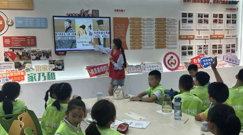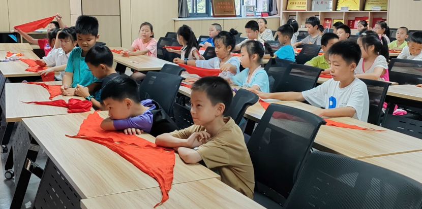 随后在湾郡社区,星星之火党员先锋队的大家不仅仅是知识的传递者,更是心灵的引路人。在开班仪式上,他们以红领巾为纽带,将历史的厚重与时代的脉搏紧密相连。队员李梦云讲述了一代又一代英雄儿女为国家和民族奋斗不息的壮丽史诗。孩子们围坐一圈,眼神中闪烁着对英雄的敬仰和对未来的憧憬,爱国主义的种子在他们幼小的心灵中悄然扎根,等待着春天的到来绽放出绚烂的花朵。