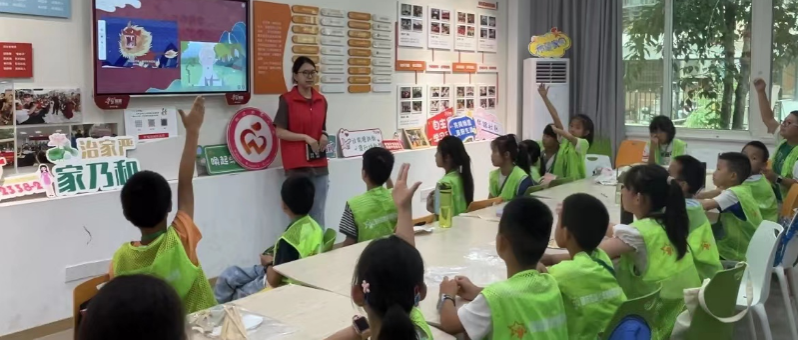 安全教育讲座中,队员邵婷婷不仅讲解了防火、防盗、防溺水等基本安全知识,还通过模拟演练、互动问答等形式,让孩子们在亲身体验中学会如何在危险面前自救互救,如何在紧急情况下保持冷静和应对。她的讲解既严肃又生动,既有深度又有温度,让安全教育的理念深入人心。
