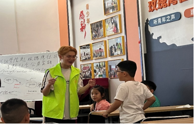 (图5:石奕衡老师教授小朋友们垃圾分类知识)
