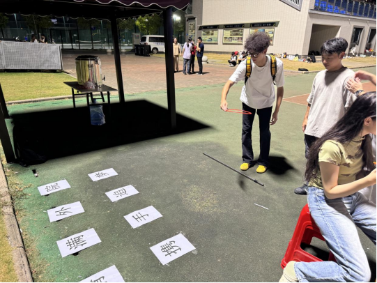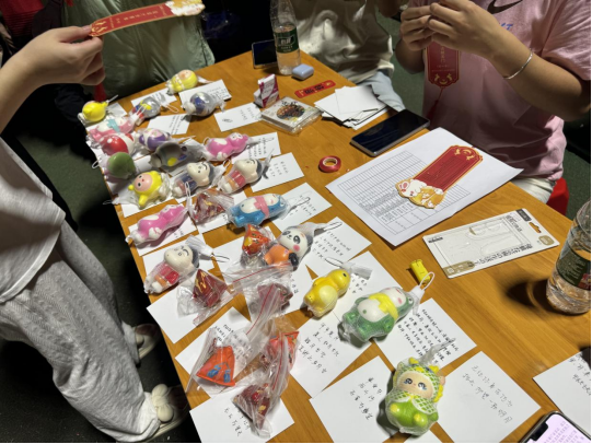 猜灯谜环节,同学们纷纷开动脑筋,竞相猜谜。猜中灯谜的同学可获得DIY灯笼或者套圈,现场气氛十分热烈。猜灯谜是中国独有的民俗文娱活动,富有民族风格,寓意深厚。同学们在猜灯谜的过程中既感受到了中国传统文化的乐趣,还能增进彼此之间的友谊。