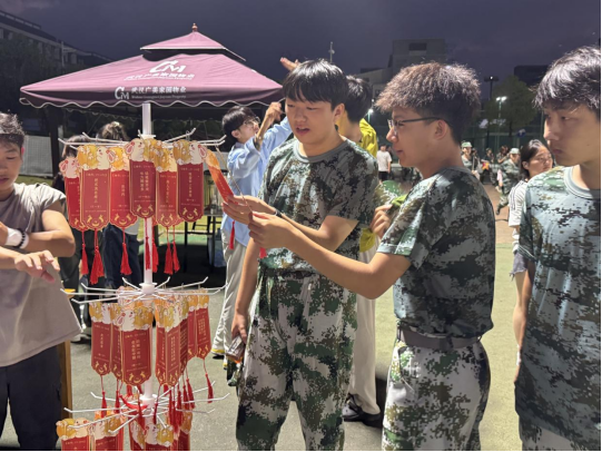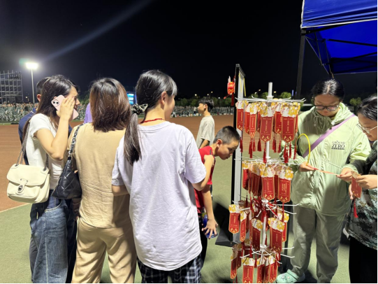 活动现场,热闹非凡。活动有猜灯谜、DIY灯笼与套圈。中秋节猜灯谜、做灯笼具有传承文化,增进氛围的重要作用。猜灯谜是中国独有的民俗文娱活动,具有深厚的文化底蕴,是中秋节文化的重要组成部分。猜灯谜不仅增加了节日的欢乐气氛,还促进了家人和朋友之间的互动和交流,展现了古代劳动人民的聪明才智;制作灯笼同样是中秋节的重要活动之一。灯笼是幸福团圆的象征,在中秋节点灯夜游更能凸显出节日的气氛。通过手工制作灯笼,同学们可以亲身体验传统文化的韵味,同时发挥创意和想象力,锻炼了动手能力,拓宽了知识面。中秋节猜灯谜、做灯笼的活动不仅丰富了节日氛围,也是传承和弘扬中国传统文化的重要途径之一。