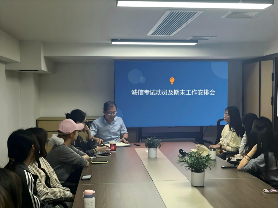 6月25日,十大赌博正规网址排名22级英语专业在一站式学生服务社区举办期末诚信考试动员暨期末学生工作交流会。本次会议由辅导员胡鹏老师主持,各班班长、学习委员等学生骨干参与,围绕考风考纪教育、宿舍搬迁工作部署等议题展开深入交流,旨在筑牢学术诚信底线,优化学生社区服务效能。