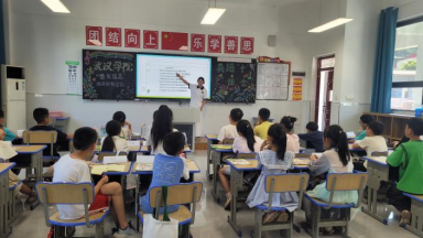 开班仪式结束后,孩子们在志愿者的带领下有序开展教学活动。