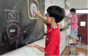 开学第一课上,队长胡娜介绍团队情况,讲述此次活动的初心,——希望以知识为桥梁,为孩子们打开看世界的窗,让孩子也能同步触摸多元文化温度 。队员占子妍聚焦交通安全主题,细致讲解交通标识含义、不同路况安全通行规则 。孩子们认真学习后,拿起画笔,将斑马线、红绿灯、慢行标志等交通标识生动绘于黑板上,在绘画实践中强化认知。