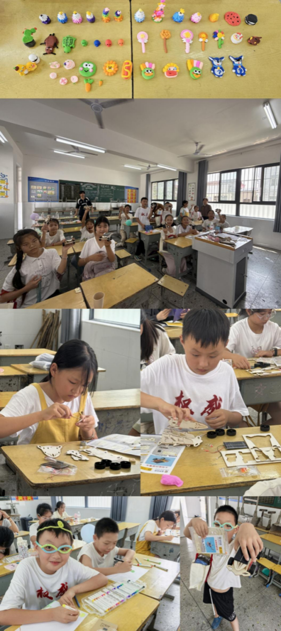 实践拓展板块,志愿者团队立足学生全面发展需求,以手工创作启迪艺术思维,以科技探索培育科学精神,以团队协作锤炼社交能力。粘土课堂上,志愿者示范揉、搓、捏技法后,学生以手赋形,平凡粘土化身为海洋生物、精巧糕点,作品尽显童真与创思;科技探索课里,学生化身“小小工程师”,专注搭建模型,木制构件、工具有序陈列,零散部件渐成完整模型。动手实践间,科技原理默化于心,科学好奇与热爱于童真中萌蘖 。志愿者团队以创新课程设计为舟,载着孩子们驶向知识与成长的彼岸。从粘土塑形时的审美感知,到模型搭建中的逻辑推演,再到团队协作里的责任担当,每一次实践都是一次成长的蜕变。