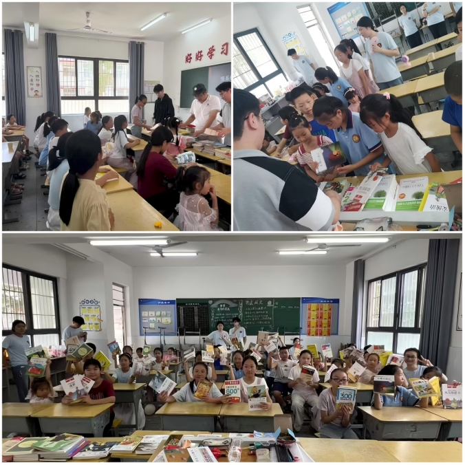 活动当日,校友代表们向卧伏中心小学捐赠书籍百余册及其他教学用品,书籍涵盖经典文学、科普百科、绘本故事等,都是经过校友们精心筛选,确保内容积极向上、符合小学生阅读需求。
