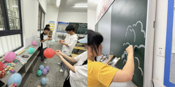 活动伊始,团队多次研讨打磨方案,志愿者们则聚焦课程趣味性与生活化,精心设计活动、筹备手工素材。7月7日上午,怀揣热忱的志愿者刚一抵达,便着手为孩子们备下精心挑选的礼物,细致装扮教室,以点滴心意传递脉脉温情。首日的破冰班会,志愿者们带着和煦笑意走上前,用幽默诙谐的自我介绍作为打开心扉的钥匙。在轻松愉快的氛围下,为孩子们心中播撒下了美好的种子。