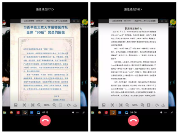 伴随着屏幕里庄严的国歌响起,本次主题学习活动正式开始。刘帅与支部成员线上观看学习“中国教育电视台关于习近平总书记回信激励广大青年的新闻联播”,郑文灿组织支部成员学习“习近平给北京大学援鄂医疗队全体‘90后’党员的回信”。