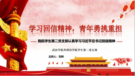 3月15日,习近平总书记给北京大学援鄂医疗队全体“90后”党员回信,向他们和奋斗在疫情防控各条战线上的广大青年致以诚挚的问候。为认真学习习近平总书记回信精神,3月26日下午17:00,十大赌博正规网址排名十大赌博正规网址排名学生第二党支部线上顺利开展了“学习回信精神,青年勇挑重担”主题学习活动。