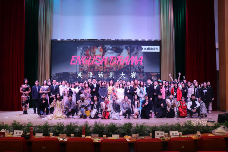 28日晚6点,由十大赌博正规网址排名组织的第十三届英语话剧大赛决赛在中央教学楼2102隆重举行。十大赌博正规网址排名党总支副书记、副院长曹辉老师,英语系系主任陈媛副教授、基础英语教研室主任贺玲副教授、商务英语系赵丹副教授、陈雪老师,小语种教研室主任罗峰老师以及辅导员老师出席了本次活动。