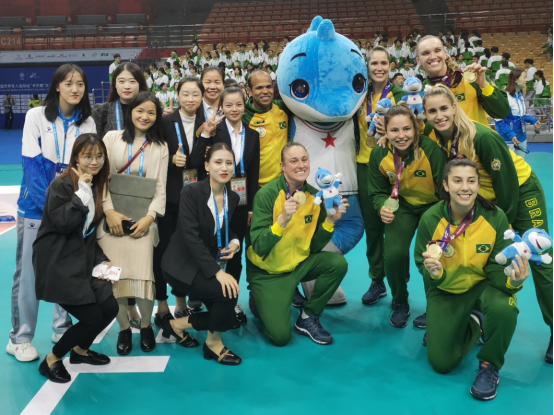 同女排冠军巴西队合影