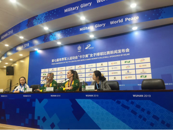 参加女排赛后新闻发布会