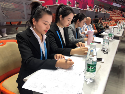 在翻译培训工作中,她们认真仔细,积极参与军运会各项目的演练、赛前准备会议、笔译人员训练实操工作等。