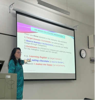 讲座中,金立贤详细介绍了EMA的理论基础。她指出,引导隐喻分析是一种结合认知隐喻理论和质性研究方法的探索方式,通过引导参与者就特定主题表达其看法,并分析他们使用的隐喻性语言来揭示潜在的文化和认知结构。这种方法不仅提供了理解个体行为的新视角,还有助于研究者探究更深层次的社会与文化问题。